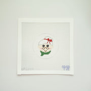 This stitch painted needlepoint canvas features Mrs. Claus, perfect for creating quick-stitch coasters, ornaments, or a seasonal gift.
