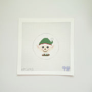 This stitch painted needlepoint canvas features an adorable Christmas elf, perfect for creating quick-stitch coasters, ornaments, or a seasonal gift.