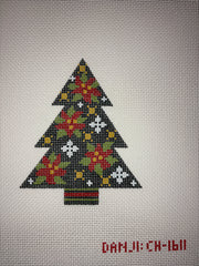 CH-1611 Tree with Poinsettia , 13 mesh, Handpainted by Danji Designs, Design Size: 5.5 x 4.5"
