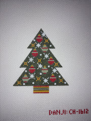 CH-1612 Tree with Ornaments , 13 mesh, Handpainted by Danji Designs, Design Size: 5.5 x 4.5"