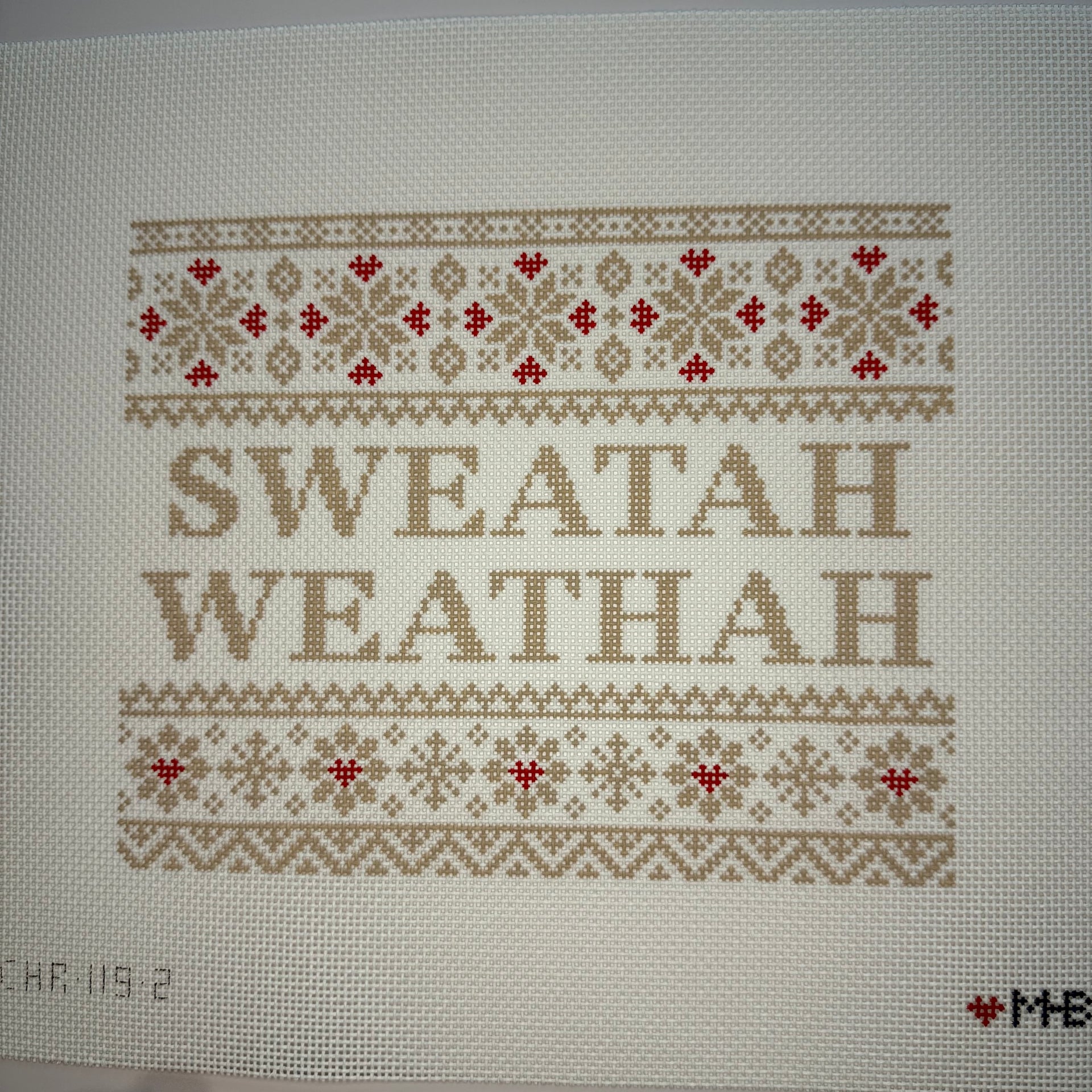 CHR-115-2 Sweatah Weathah (Taupe) , 13 mesh, Handpainted by love mhb studio, Design Size: 9 x 7"