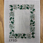 EP0901 Pine Boughs and Leaves Picture Frame - TS, 13 mesh, Handpainted by Susan Roberts, Design Size: 6 x 8" (4 x 6" opening)