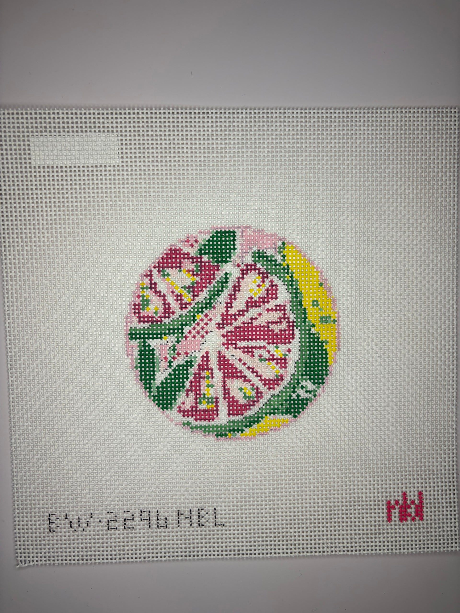Lemonade Round BW2296NBL , 13 mesh, Handpainted by Blue Waters Needlepoint, Design Size: 4" Round