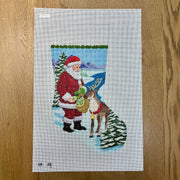 SR0119 Santa Feeding Apples To Reindeer, Stocking - TS, 13 mesh, Handpainted by Susan Roberts, Design Size: 19" high