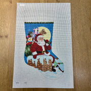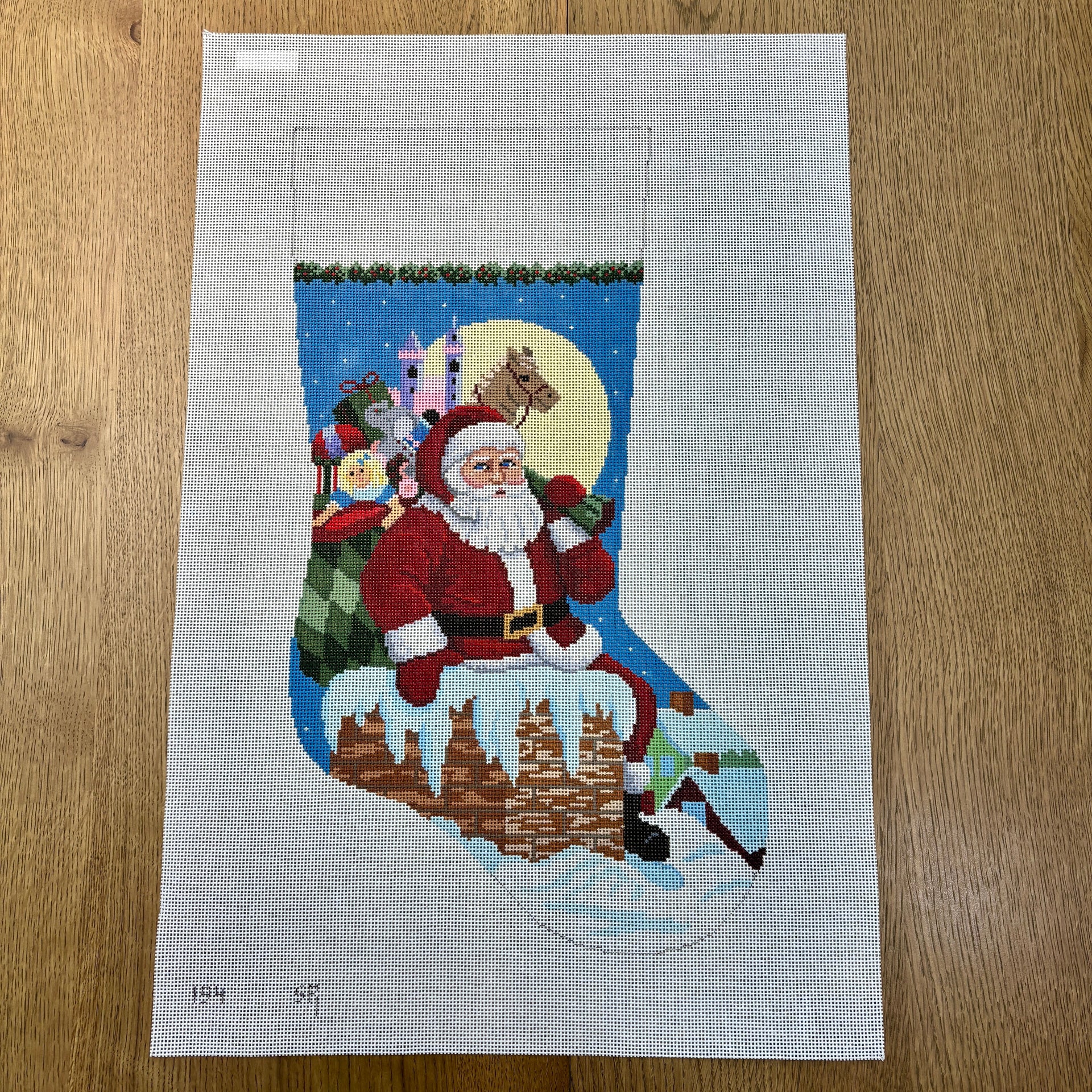 SR0194 Santa, Down The Chimney, Girl, Stocking - TS, 13 mesh, Handpainted by Susan Roberts, Design Size: 19" high