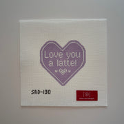 SRD-130 Love You A Latte , 13 mesh, Handpainted by Stitch Rock Designs, Design Size: 4.25 x 4.25"