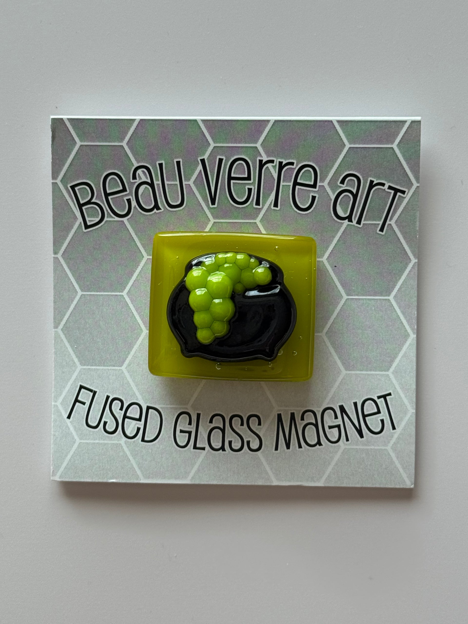 Fused glass needleminder magnet from Beau Verre Arts. Each is handmade and unique; design may vary slightly from photo.