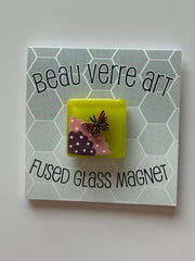 Fused glass needleminder magnet from Beau Verre Arts. Each is handmade and unique; design may vary slightly from photo.
