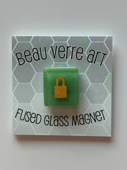 Fused glass needleminder magnet from Beau Verre Arts. Each is handmade and unique; design may vary slightly from photo.