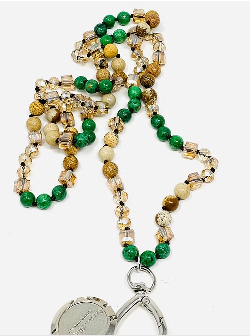 Up Up Chatelaine - Crystals or Gemstones Only from Victoria Whitson. These gorgeous hand-knotted necklaces come with a jump ring, and you can easily attach any VW tool kit or scissors.