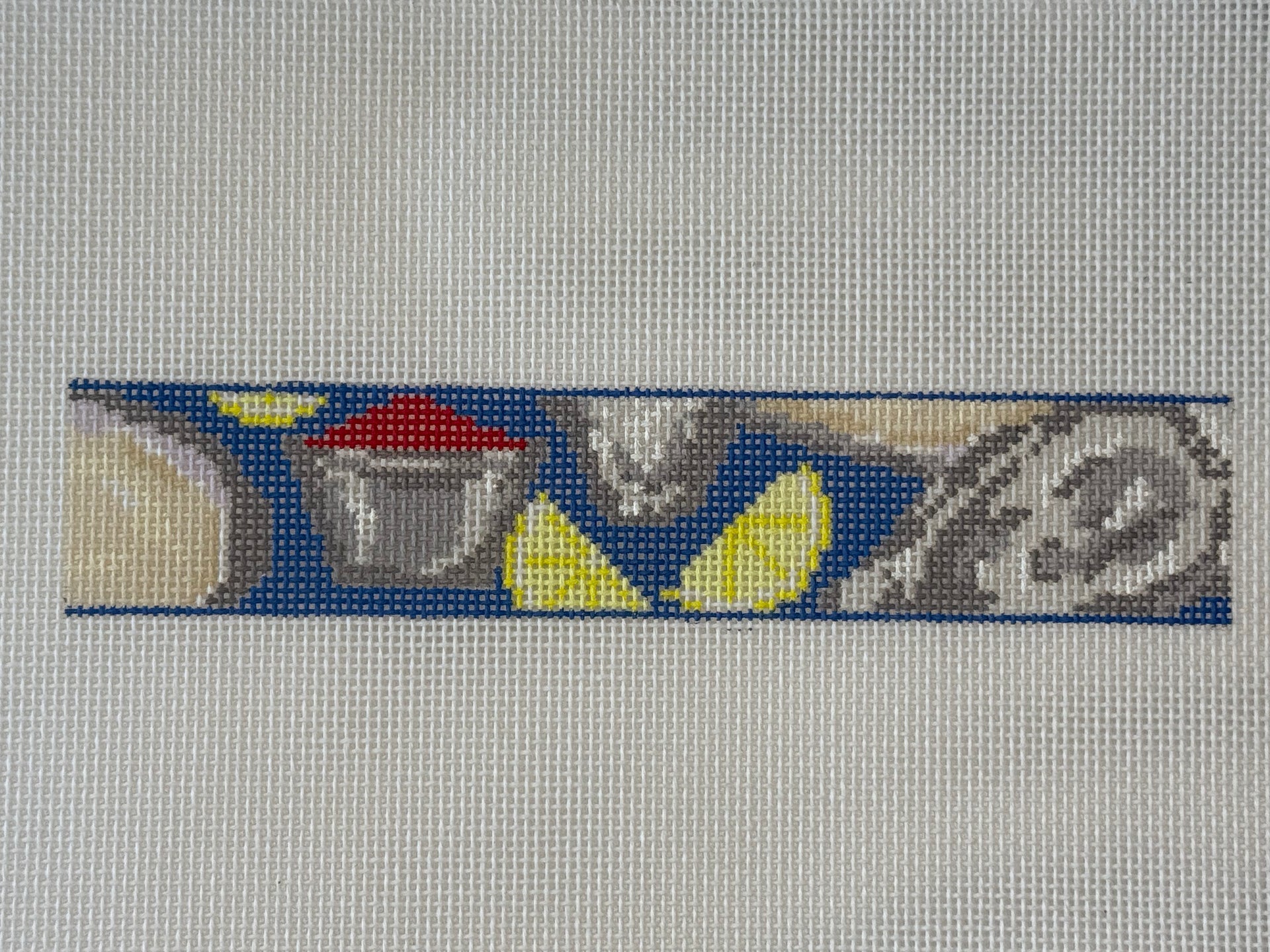 Raw Oyster Key Fob AOK180 , 18 mesh, Handpainted by Ann Kaye Studio, Design Size: 6 x 1.25"