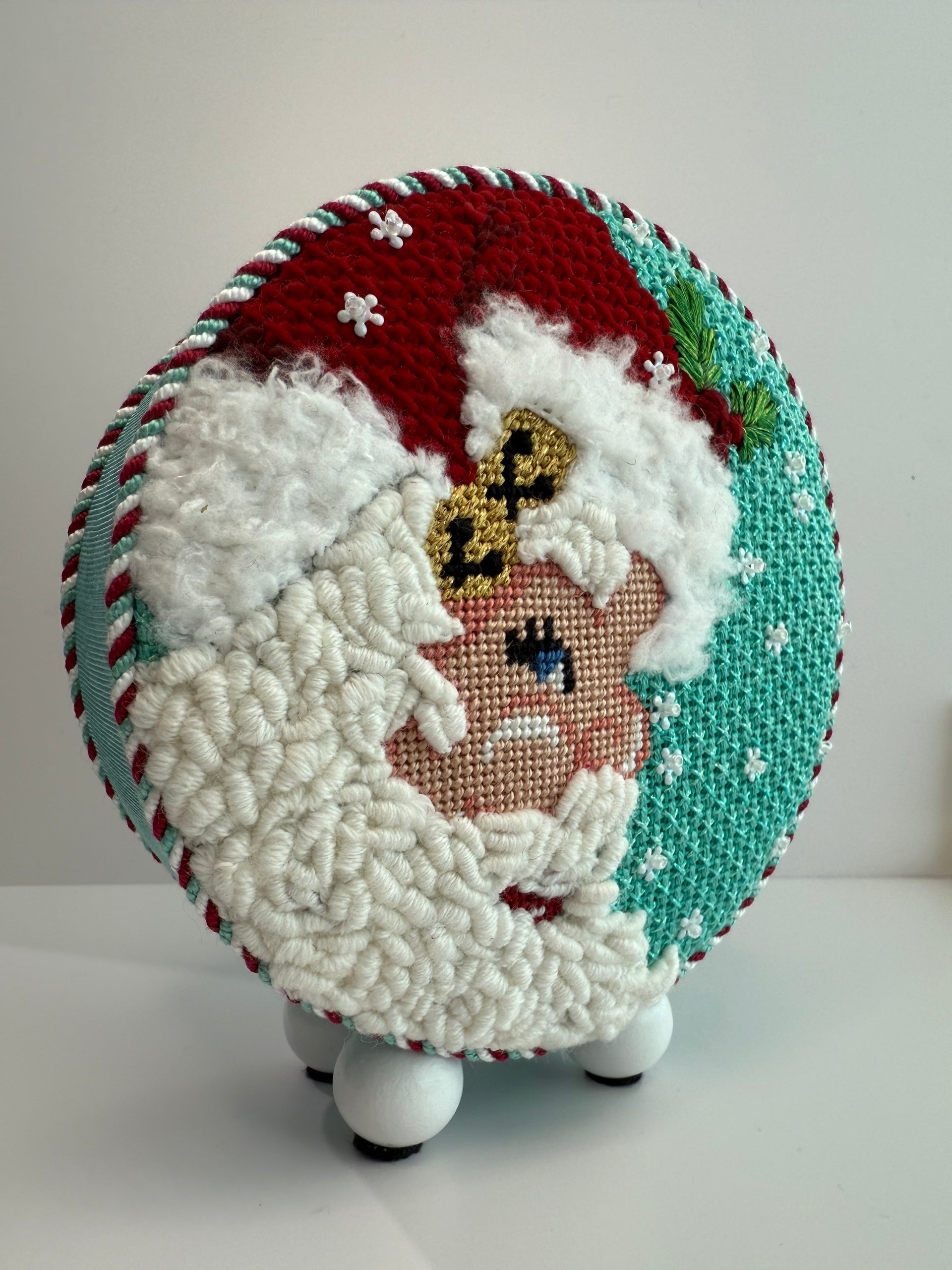 HO1142 Santa Round,18 mesh, Handpainted by Raymond Crawford, Design Size: 5" Round.