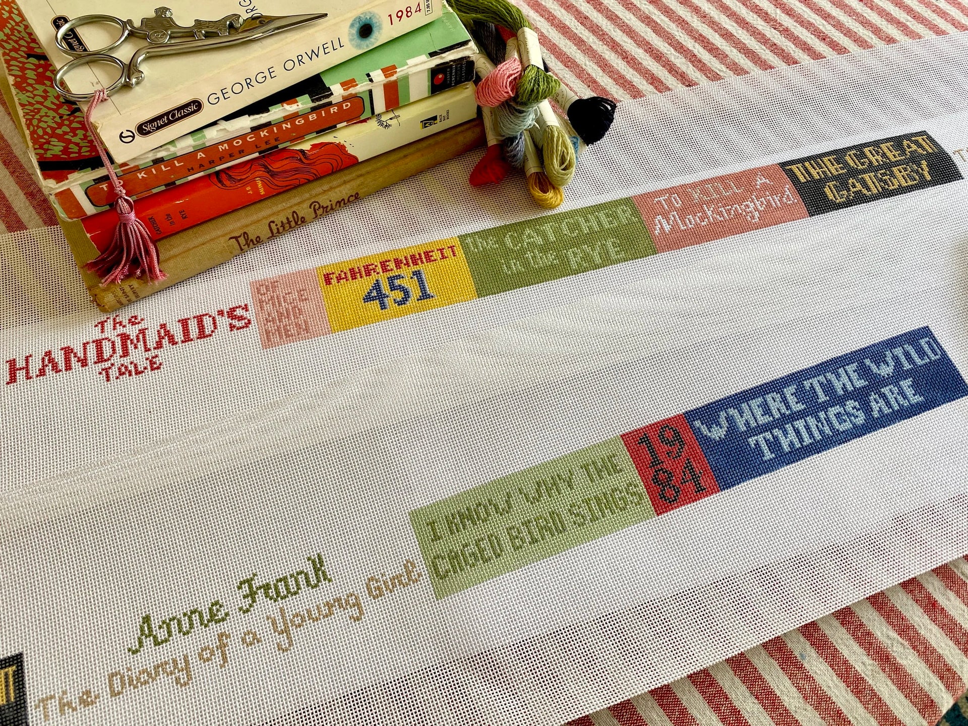 20M The Banned Book Belt, 18 mesh, Handpainted by The Plum Stitchery, Design Size: 37 2 1.5"