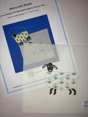 151 Sheep with Thistle with stitch guide , 18 mesh, Handpainted by Patricia Sone, Design Size: 4 x 4"