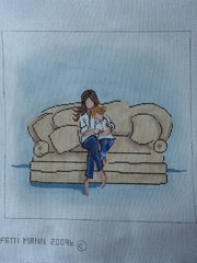 20096 Mom and Child Cuddles , 18 mesh, Handpainted by Patti Mann, Design Size: 9" square