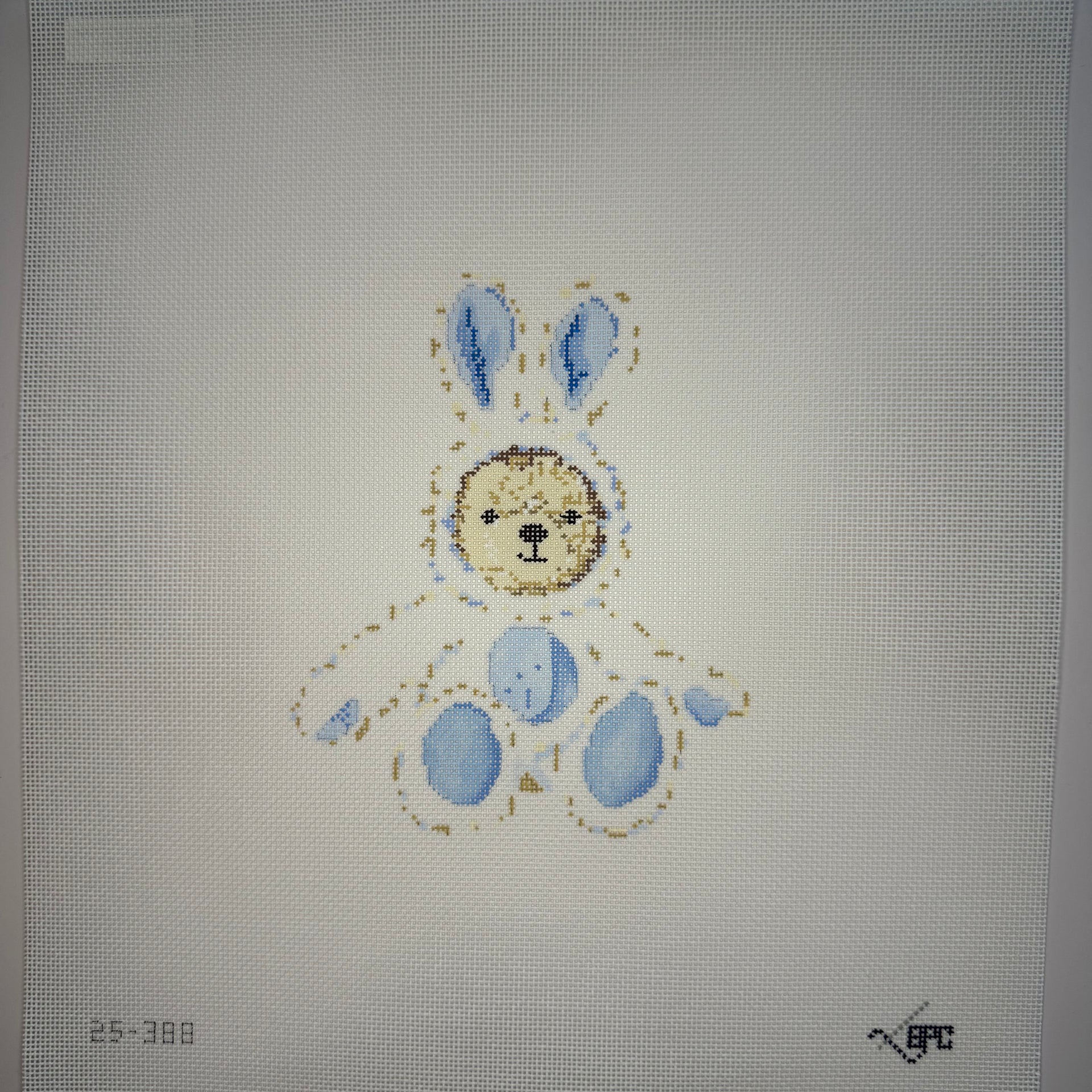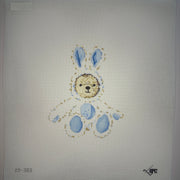 25-388 Bunny Bear Blue , 18 mesh, Handpainted by Blueberry Point Canvas, Design Size: 5.5 x 6.5"