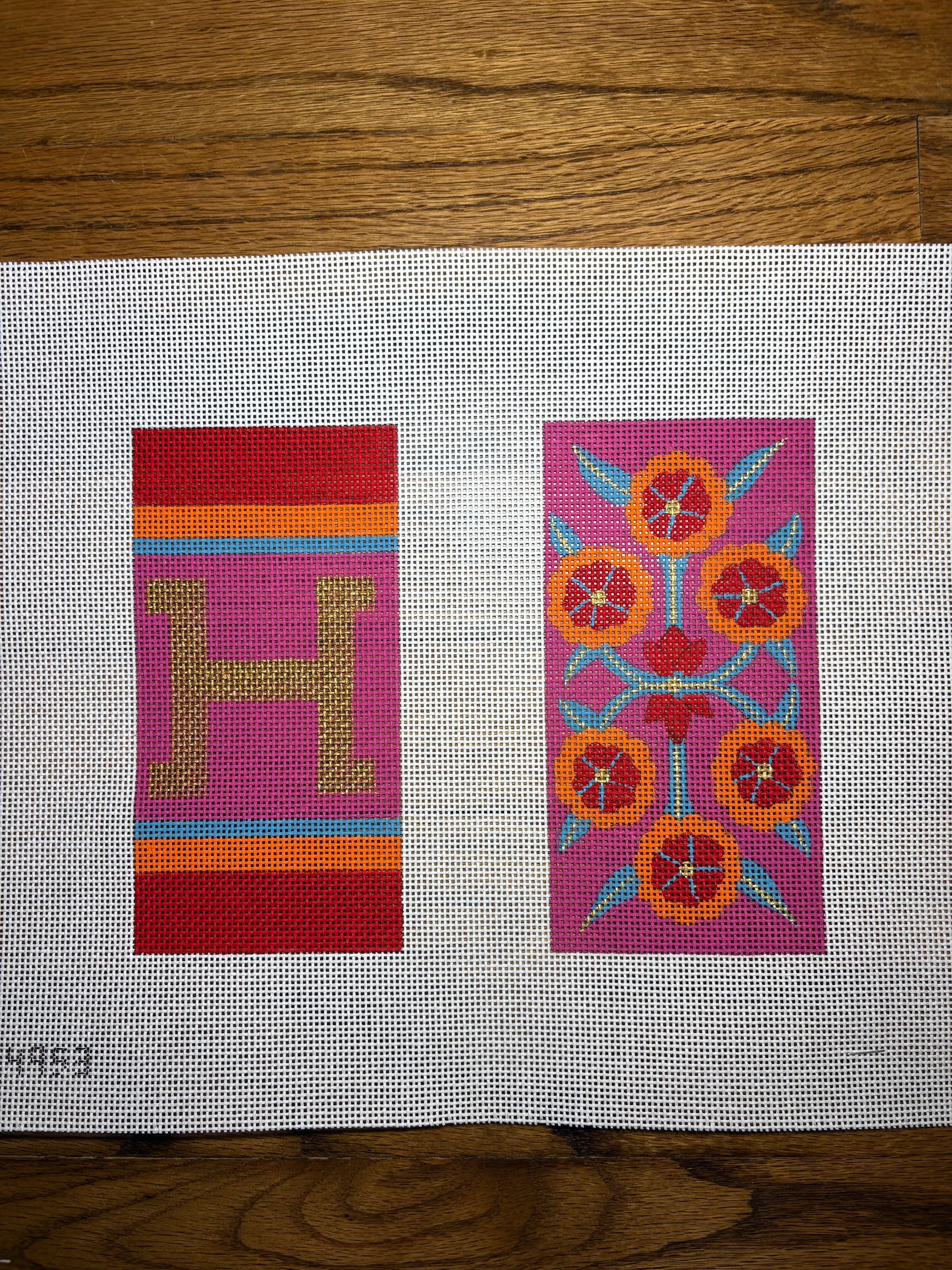 4953 H Double Sided Eyeglass Case , 13 mesh, Handpainted by Alice Peterson, Design Size: 3.5 x 7" Double sided