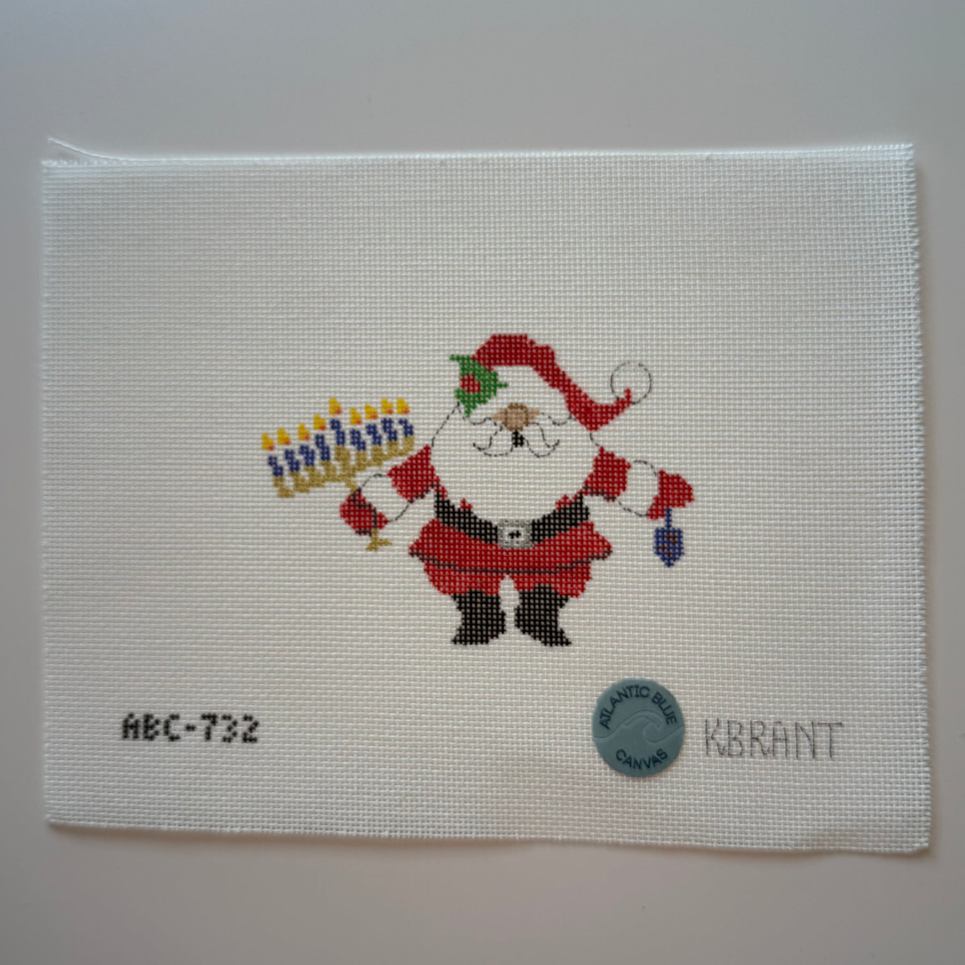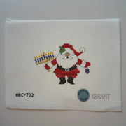 ABC-732 Menorah Santa , 18 mesh, Handpainted by Atlantic Blue Canvas, Design Size: 5 x 3.5"