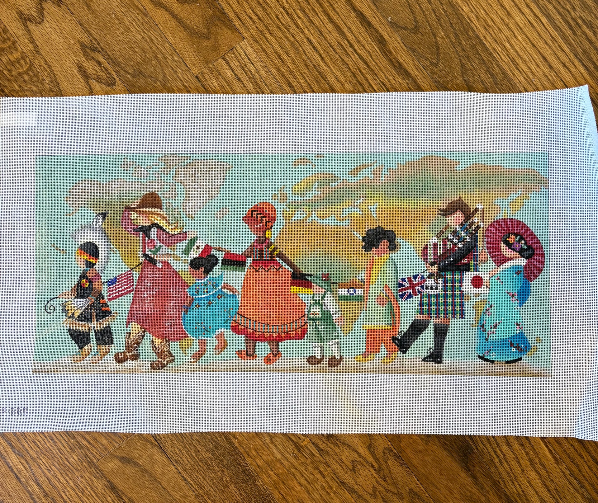ADP225 Children of the World March , 18 mesh, Handpainted by Victoria Whitson, Design Size: 18.5 x 8"