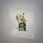 Birthday Monkey HBD011, 18 mesh, Handpainted by Colors of Praise, Design Size: 3.5 x 5.75"