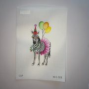 Birthday Zebra HBD013, 18 mesh, Handpainted by Colors of Praise, Design Size: 3.25 x 6.75"