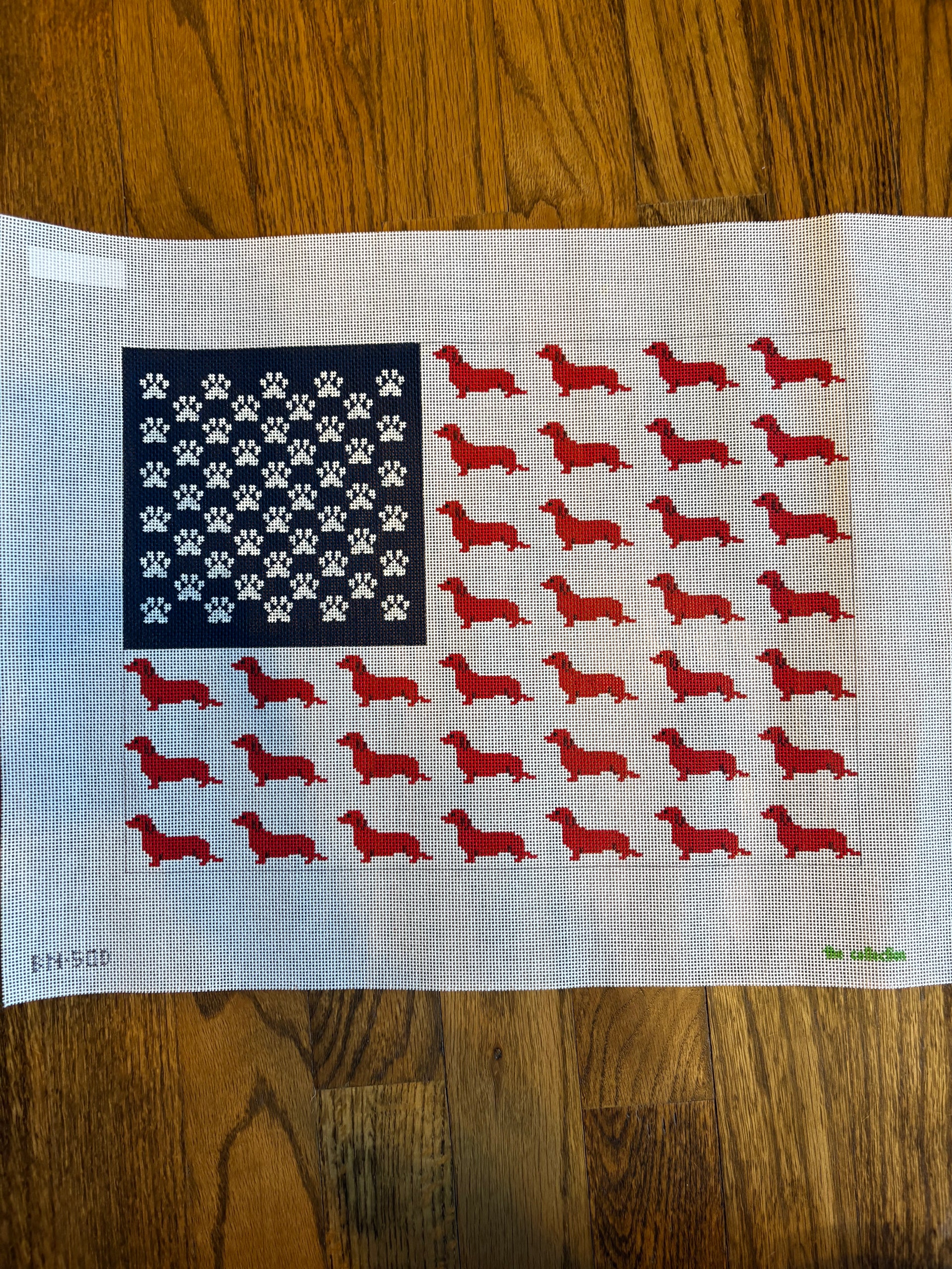 BN50D Dog Flag , 18 mesh, Handpainted by The Collection, Design Size: 12 x 9"