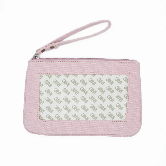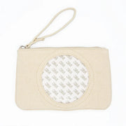 Canvas clutch from Planet Earth Fiber.Dimensions 8.5" x 5.5". Round fits a 4" round insert, and rectangle fits a 3 x 6" insert.