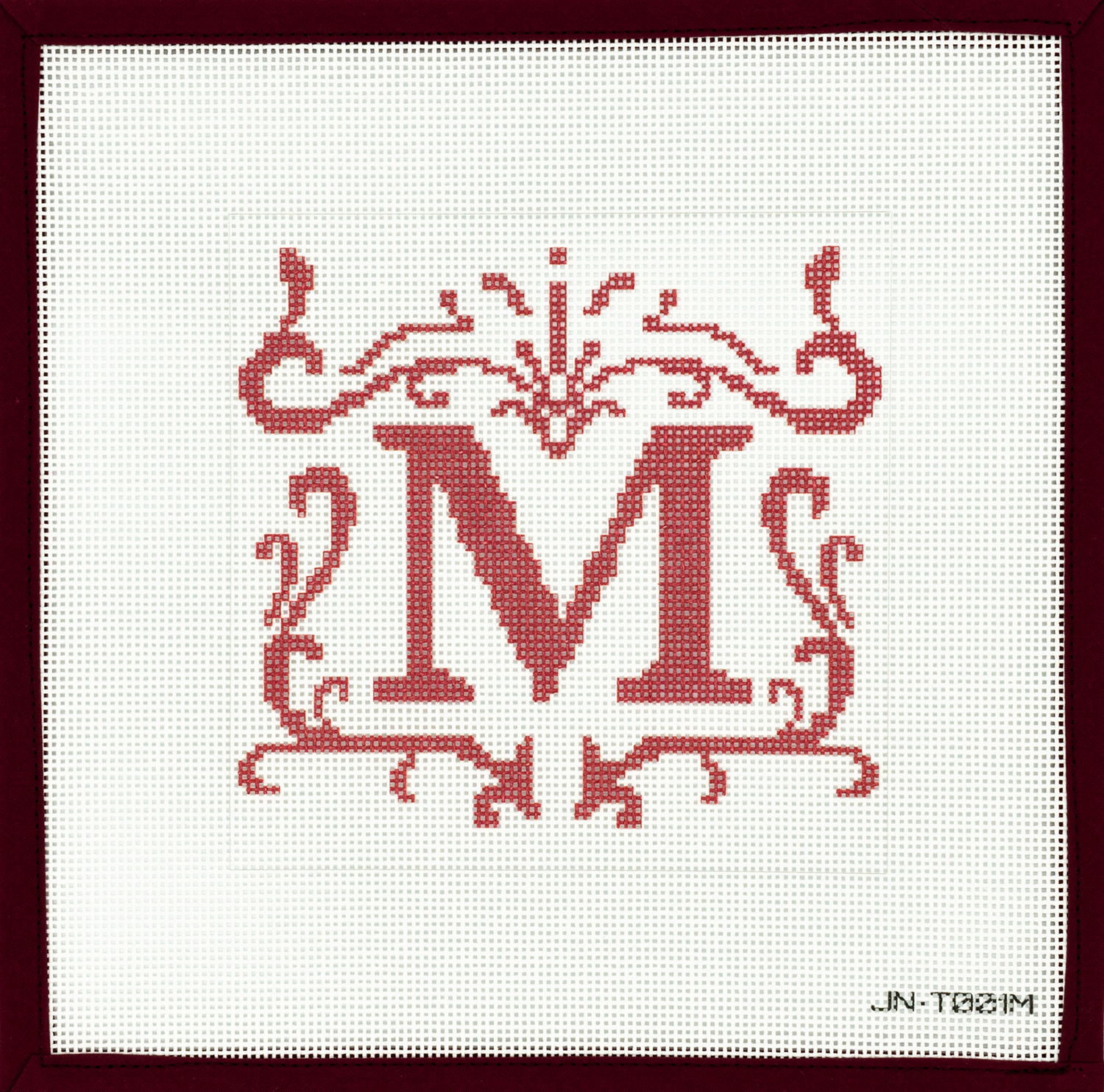 JN-T001M Letter M Filigree Border Large Red, 18 mesh, from Planet Earth Fiber, Design Size: 6 x 6"