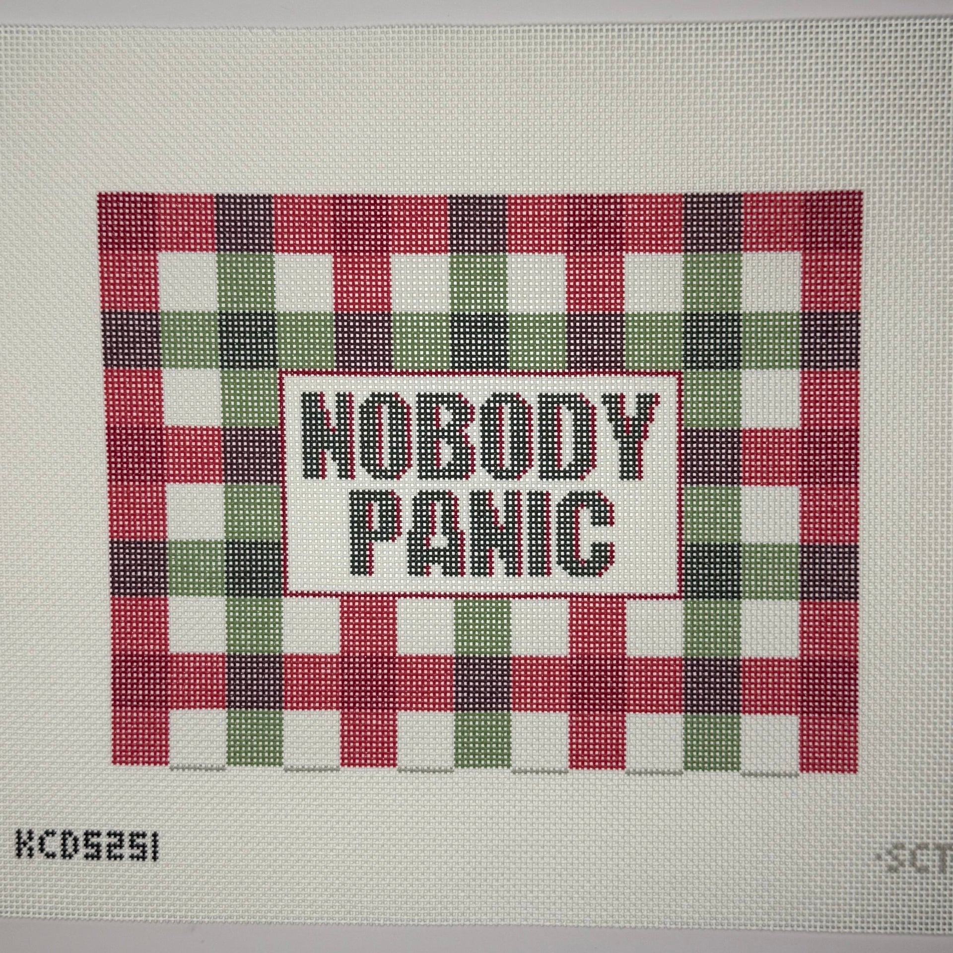 KCD5251 Nobody Panic Holiday , 13 mesh, Designed by KC Needlepoint Designers Design Size: 9.75 x 7.5