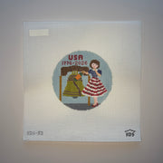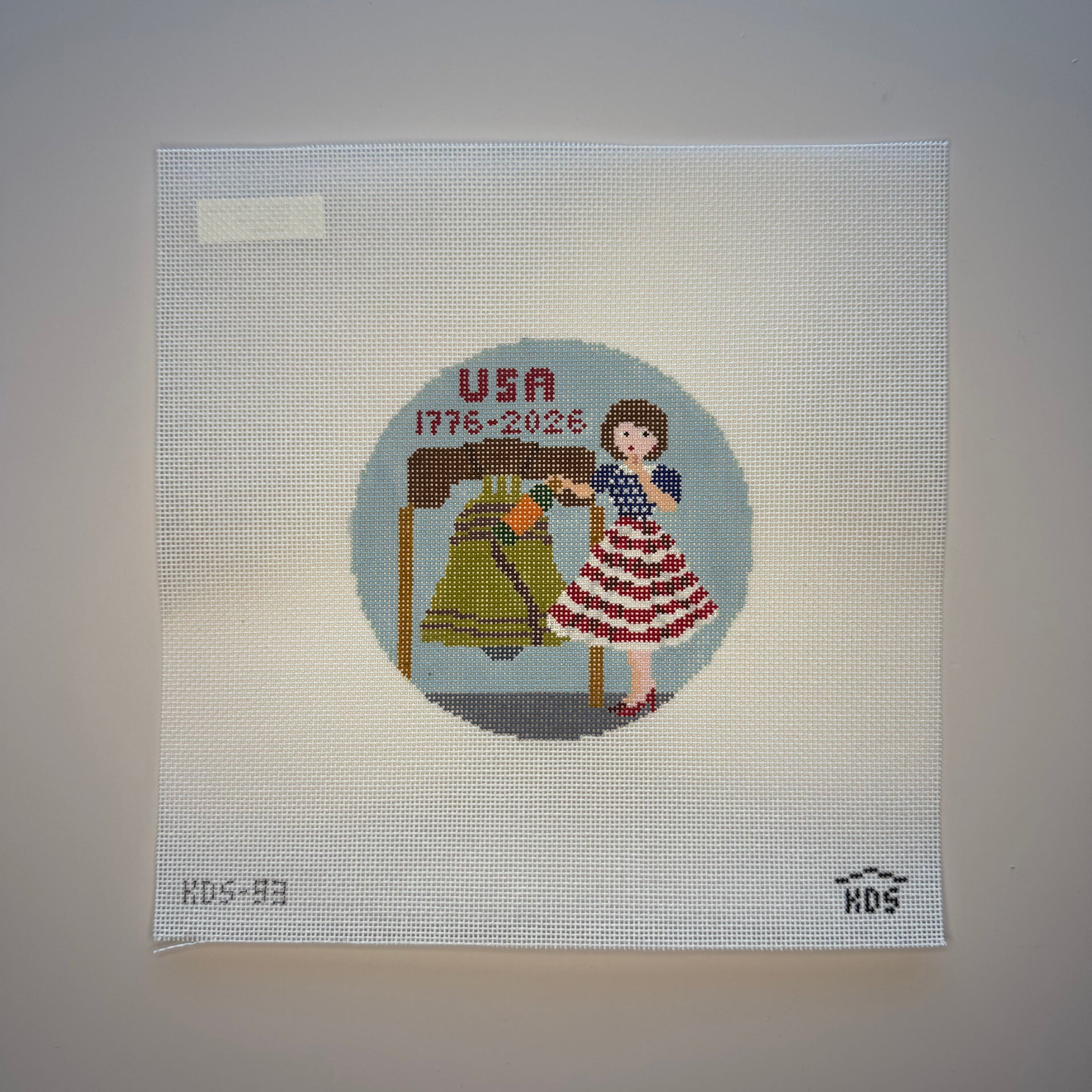 KDS-93 Betty Loves Liberty , 18 mesh, Handpainted by The Gingham Stitchery, Design Size: 5" round