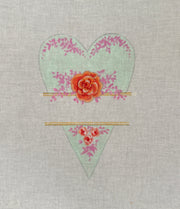 MC525 Blue Floral Heart, 18 mesh, Handpainted by Colors of Praise, Design Size: 6 x 8.5"