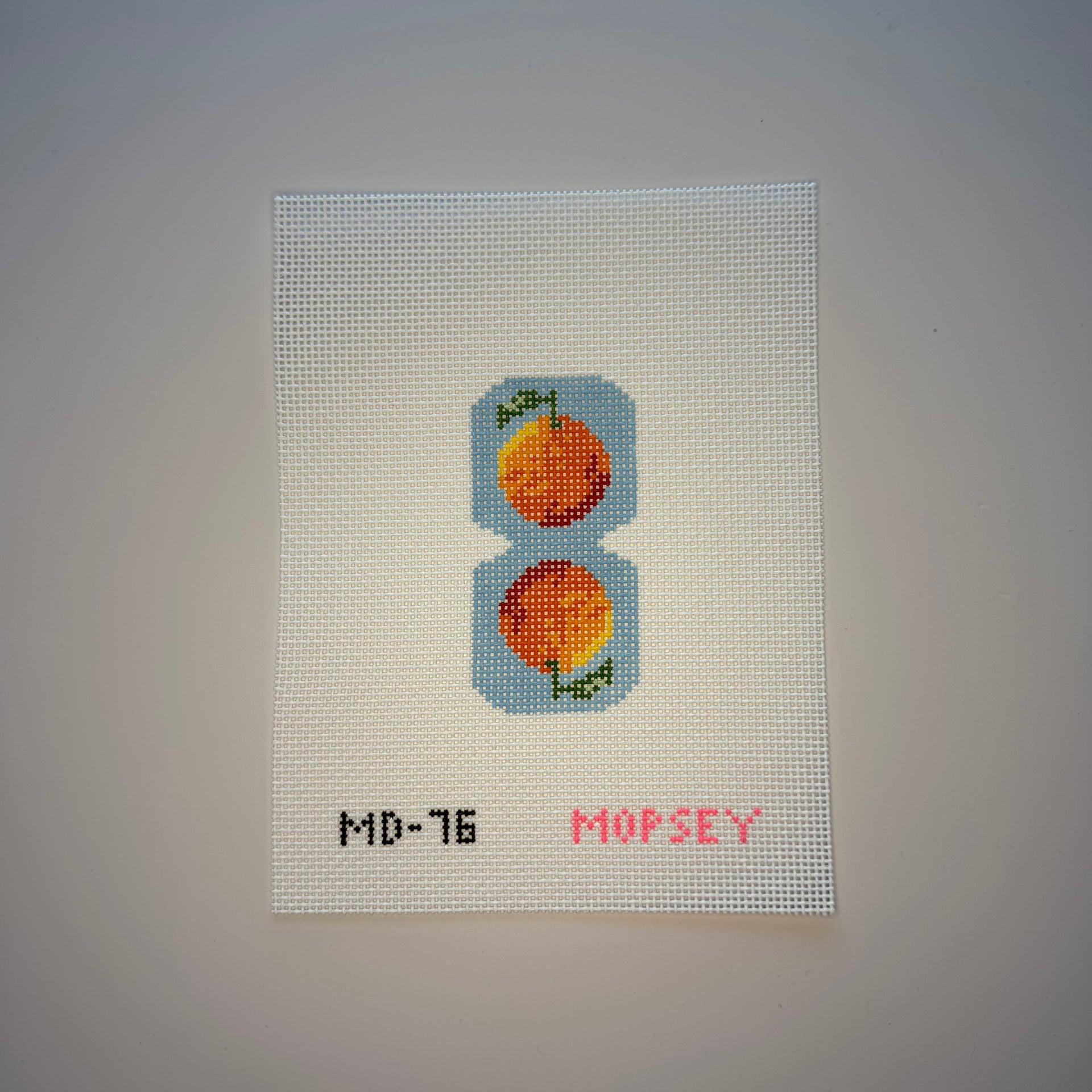 MD-76 Oranges Charm , 13 mesh, Handpainted by Mopsey Designs, Design Size: 2 x 4"