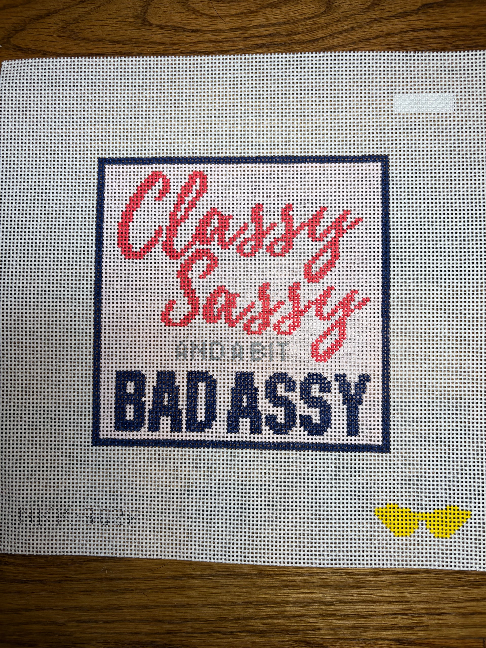 NKK302F Bad Assy , 13 mesh, Handpainted by Audra, Design Size: 6 x 6"