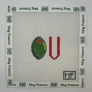 Olive U, 18 mesh, Handpainted by MF Needlepoint, Design Size: 2 x 1.6"