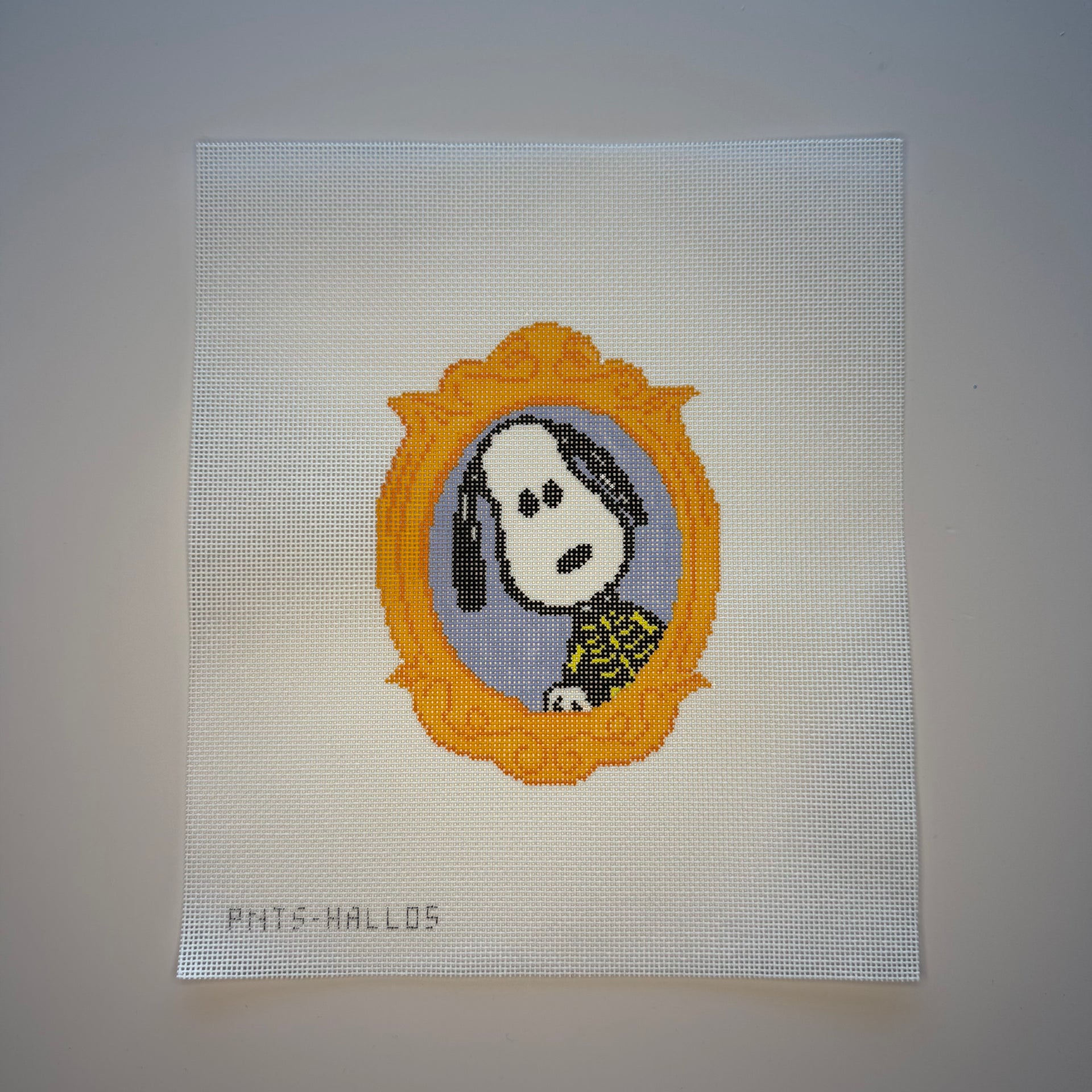 PEANUTS Halloween PNTS-HALL05 Framed Snoopy Skeleton , 18 mesh, Handpainted by Officially Needlepoint, Design Size: 4 x 5.5"