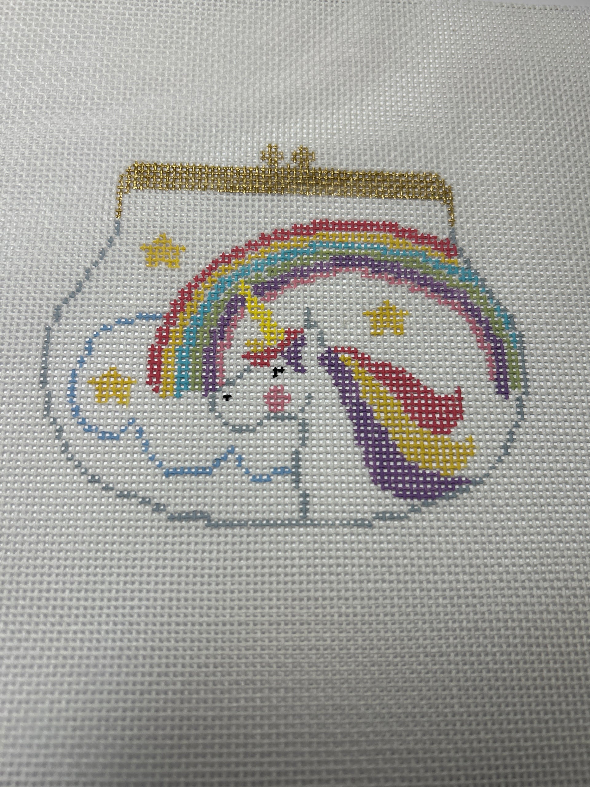 SH132 Unicorn Purse, 18 mesh, Handpainted by Kathy Schenkel, Design Size:4x3.5”