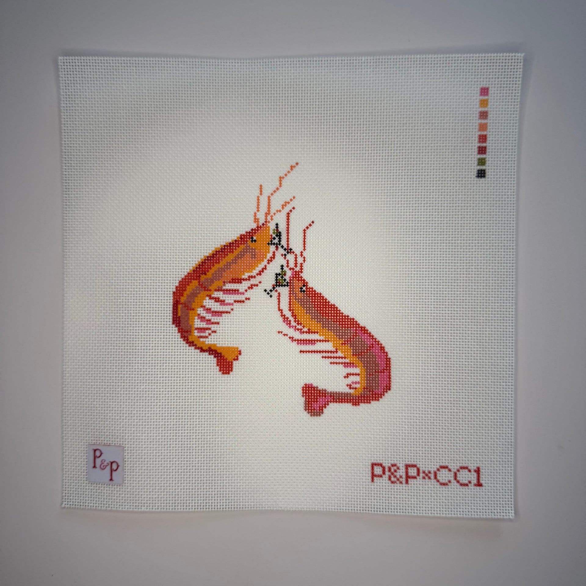 Shrimp Cocktail , 18 mesh, Handpainted by Penny & Penny, Design Size: 4.5 x 5"