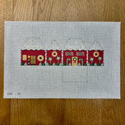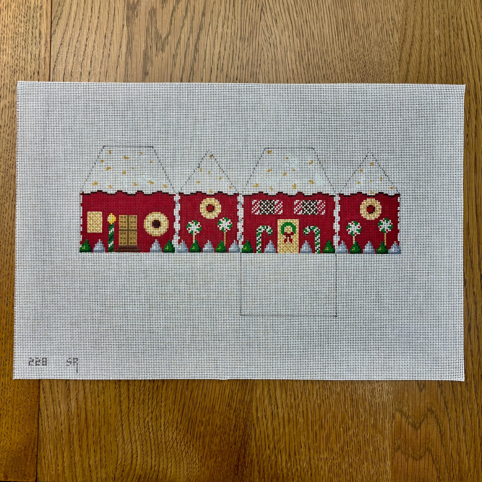 SR0228-18 Red Velvet With Nut Icing, 3D Gingerbread House - 18 mesh - TS, 18 mesh, Handpainted by Susan Roberts, Design Size: 11 x 6"; 2.25 x 3.5 x 3"