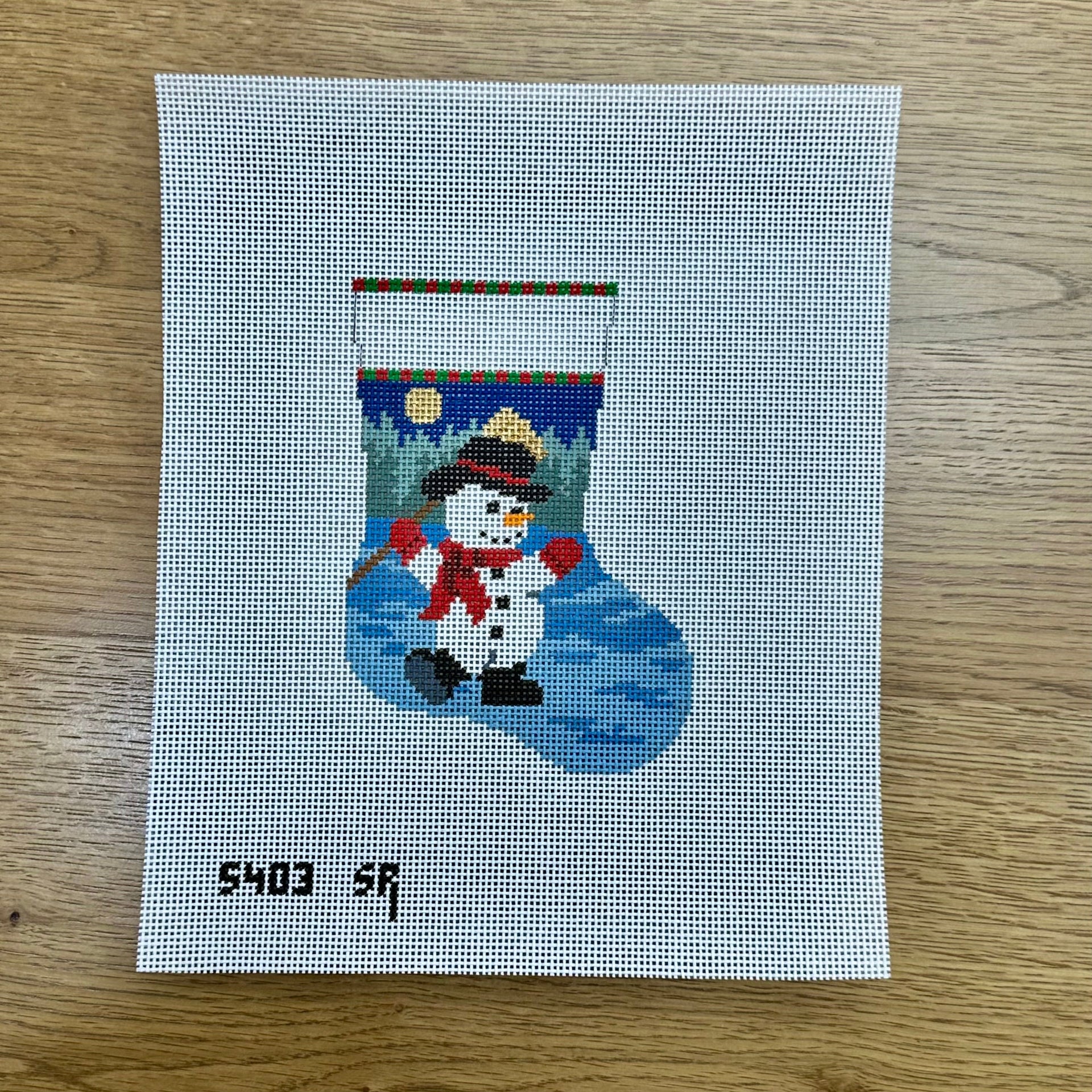 SR5403 Dancing Snowman, Mini Stocking - TS, 13 mesh, Handpainted by Susan Roberts, Design Size: 6.25" tall