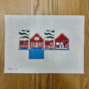 SR5518-18 Crab Shack, Mini House - 18 mesh - TS, 18 mesh, Handpainted by Susan Roberts, Design Size: 9 x 5"; 2.5 x 2.75 x 2" finished size