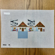 SR5522 Ski Chalet, Mini House - 18 mesh - TS, 18 mesh, Handpainted by Susan Roberts, Design Size: 9 x 5"; 2.5 x 2.75 x 2" finished size
