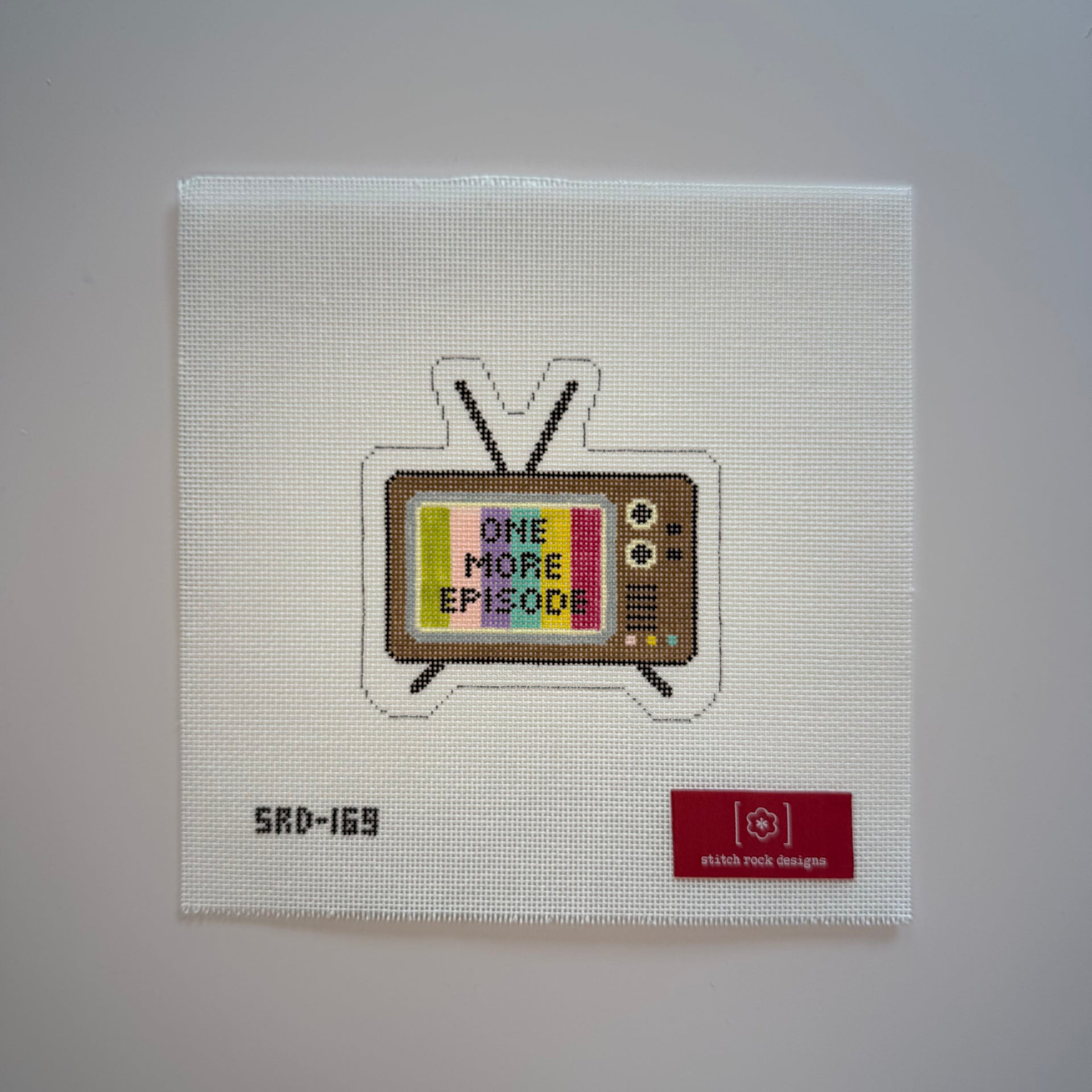 SRD-169 One More Episode , 18 mesh, Handpainted by Stitch Rock Designs, Design Size: 4 x 4"