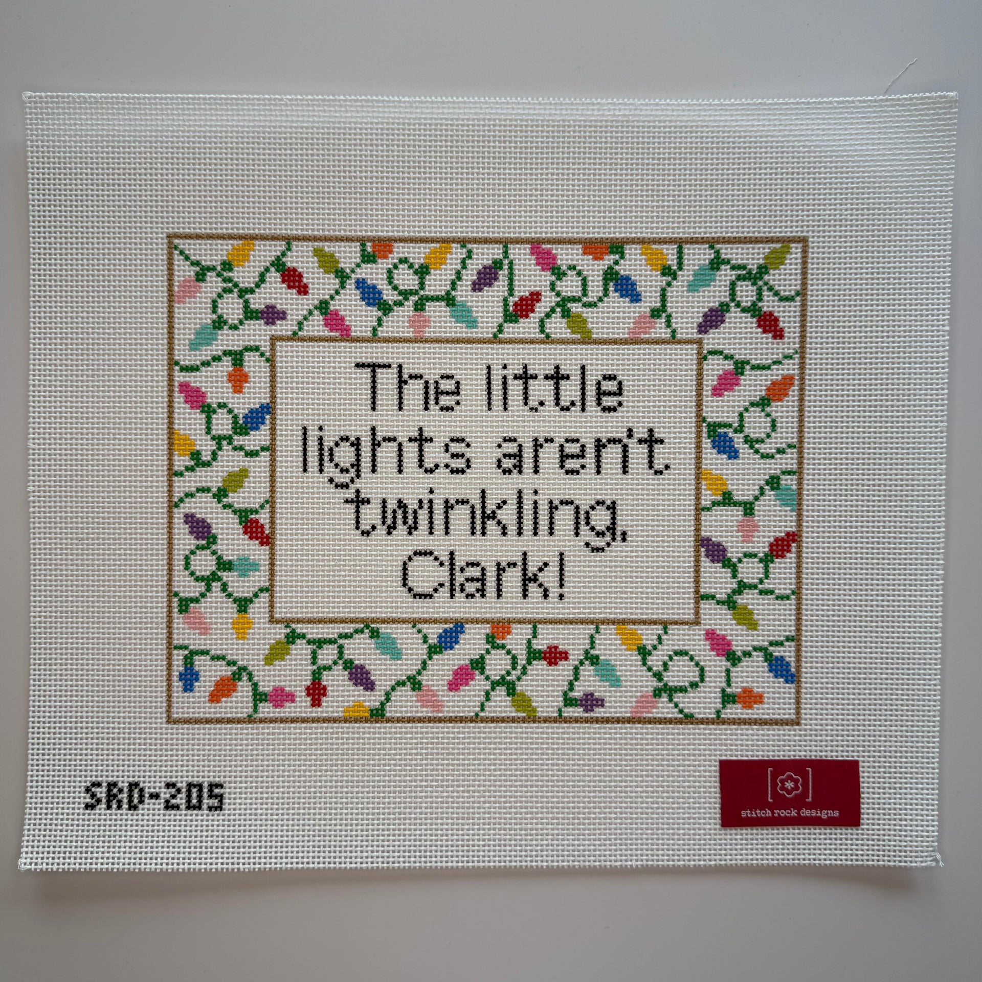 SRD-205 The Lights Aren't Twinkling , 13 mesh, Handpainted by Stitch Rock Designs, Design Size: 9 x 7"