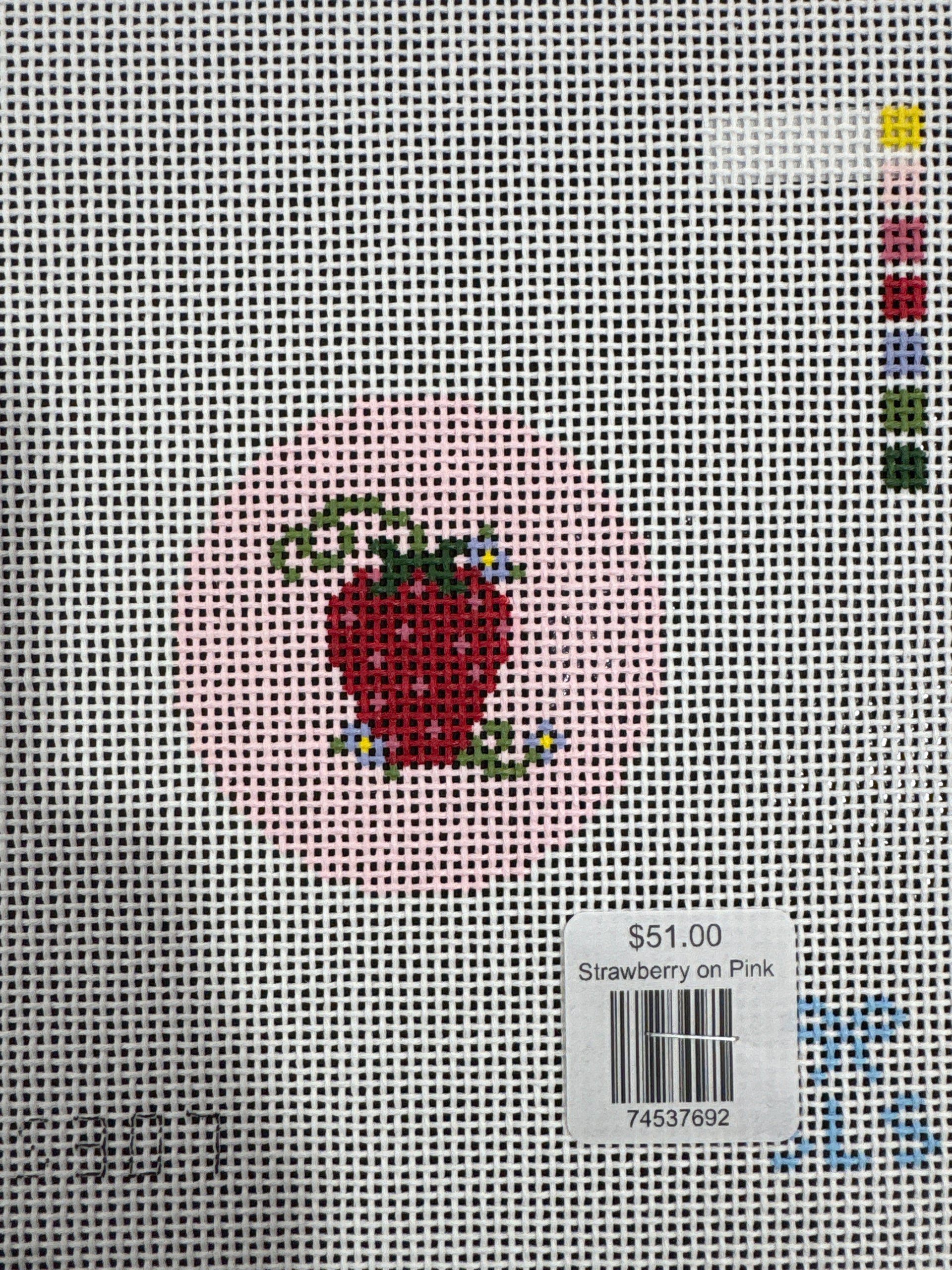 Strawberry on Pink, 13 mesh, Handpainted by SLS Needlepoint by Stitchtent, Design Size: 2.75" Round