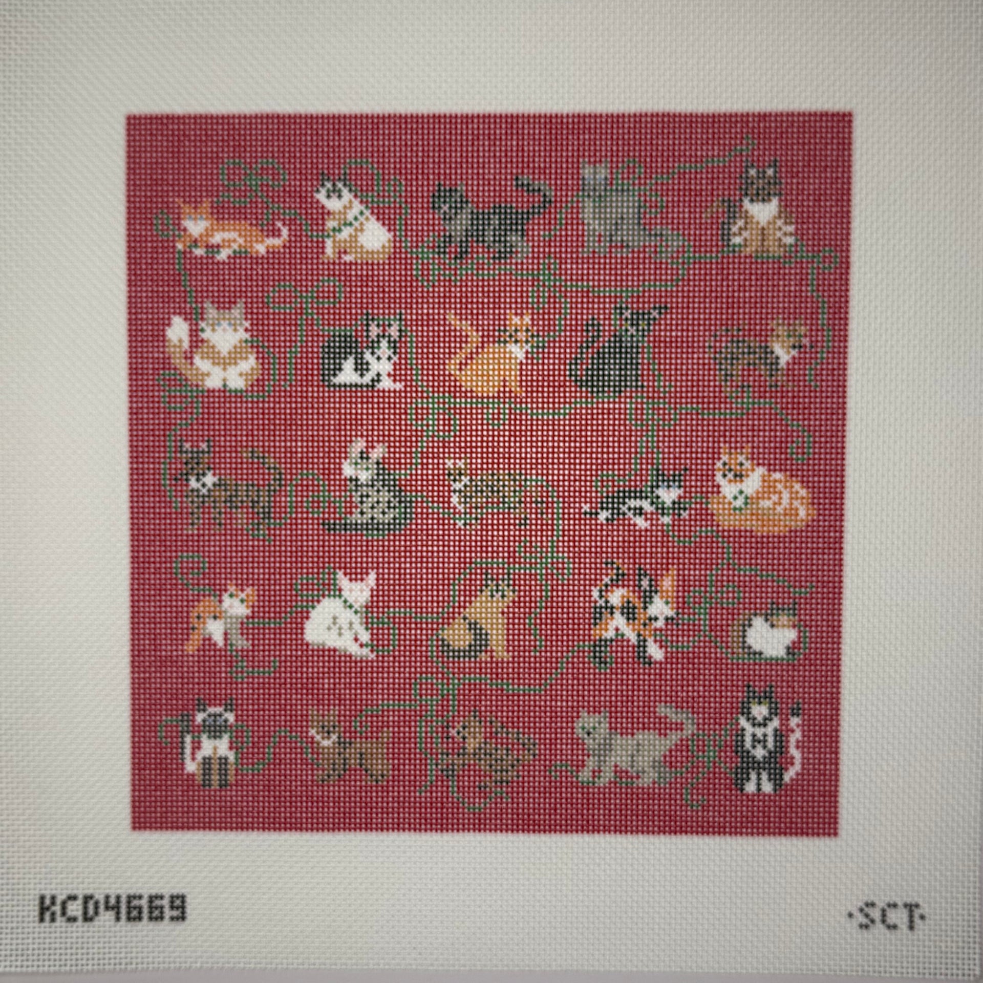KCD4669 Holiday Cat Square - MKT, 13 mesh, Designed by KC Needlepoint Designers Design Size: 10" square
