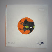 25-392 Halloween Black Cat , 13 mesh, Handpainted by Blueberry Point Canvas, Design Size: 4" round