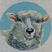 AB02 Heather the Sheep - TS, 18 mesh, Designed by Amelia Bond Designs for the Gingham Stitchery, Design Size: 4" Round
