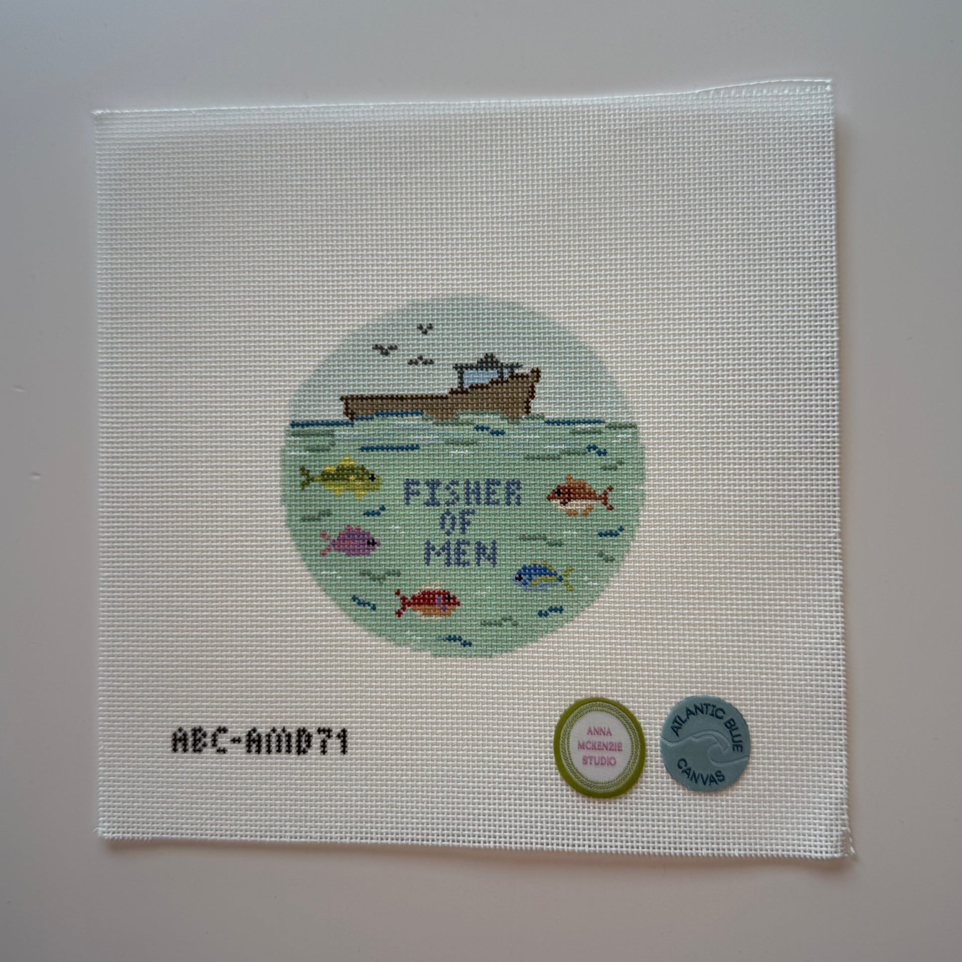 ABC-AMD71 Fisher of Men , 18 mesh, Handpainted by Atlantic Blue Canvas, Design Size: 4" round