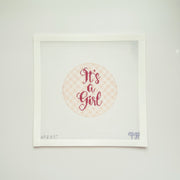 Celebrate the joy of a new arrival with the "It's a Girl" Gingham needlepoint canvas by AP Needlepoint, designed by A Poore Girl Paints. Featuring soft light pink gingham and elegant script, this charming design is perfect for commemorating a baby girl's arrival.