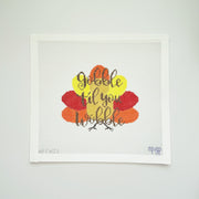 Celebrate Thanksgiving with a playful twist with the Gobble Til You Wobble needlepoint canvas by AP Needlepoint, designed by A Poore Girl Paints.